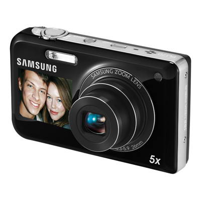 The 16 MP Samsung PL170 (PL171) dual-view camera features a unique 1.5-inch front screen that allow you to perfectly frame your portrait. It equipped with a 5x (26-130mm) wide-angle optical zoom lens lets you capture group shots as well as close-ups. The Dual image stabilization automatically compensates for camera movement to create clear, blur-free images.